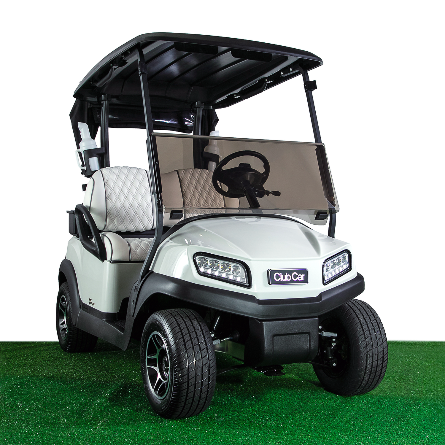 The brand-new Club Car Tempo Golf Cart in Metallic Glacier White offers a sleek, reliable, and fully equipped option for golfers, with the choice of Trojan FLA batteries or an upgraded lithium system. It features limited edition premium seating, a bag cover, esky, and full lighting including headlights, taillights, indicators, and horn for safety and convenience on the course. Practical additions such as the club and ball washer, two sand bottles, and optional private speed code (maximum allowable golf cart speed) make this Tempo a versatile and attractive choice for anyone seeking a high-quality Club Car golf cart.