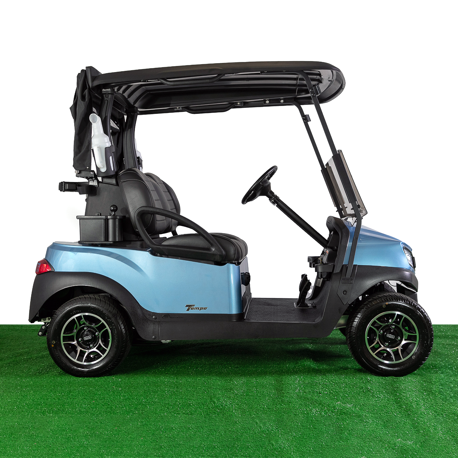 The brand-new Club Car Tempo Golf Cart in Metallic Ice Blue delivers a clean, modern look with all the essentials for a comfortable day on the course, and comes standard with FLA batteries or the option to upgrade to a lithium system. It features premium seating, a bag cover, and full lighting with headlights, taillights, indicators, and horn for added visibility and safety. Fully featured with accessories such as an esky, club and ball washer, and two sand bottles make this Tempo a well-rounded and reliable option for golfers seeking a high-quality Club Car golf cart.